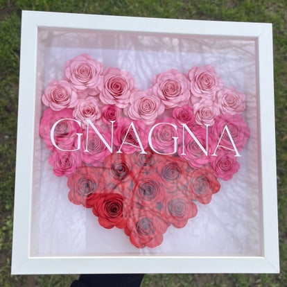 Offrez un cadeau unique et chargé d’émotion avec ce magnifique cadre. Composé de fleurs en papier roulé formant un cœur harmonieux dans des nuances de rose, ce cadre est une véritable déclaration d’amour.