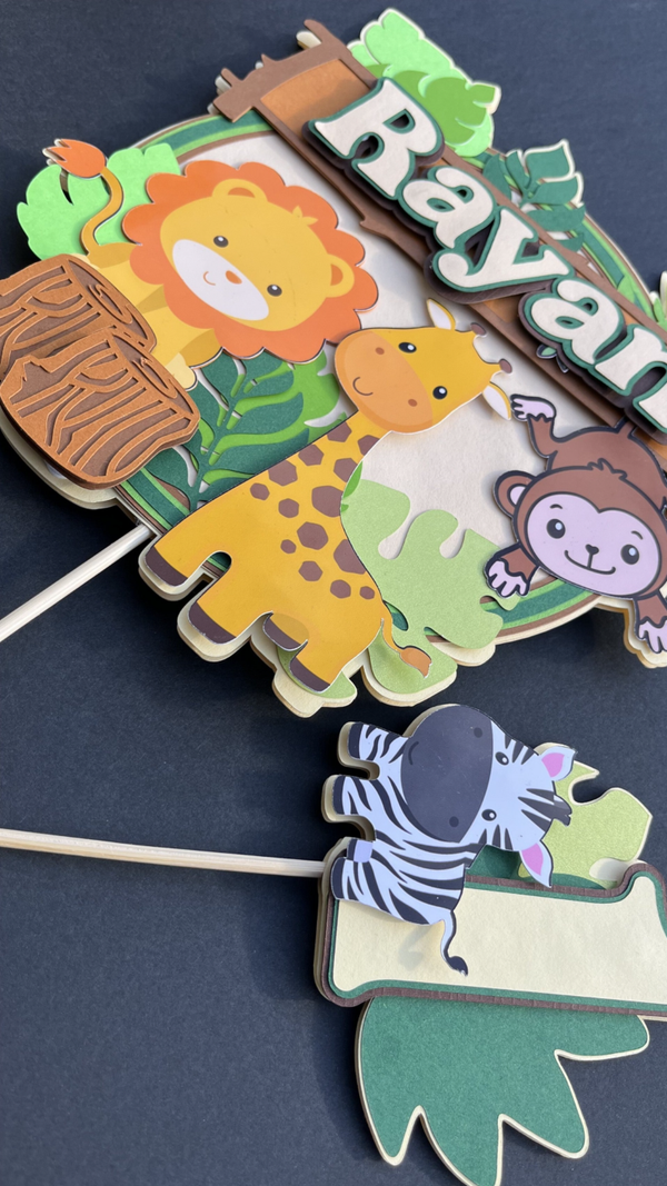 Ajoutez une touche d'aventure à votre gâteau avec notre cake topper safari personnalisé ! Parfait pour les amoureux de la nature et des animaux, ce topper coloré et ludique apportera une ambiance sauvage et joyeuse à votre célébration.